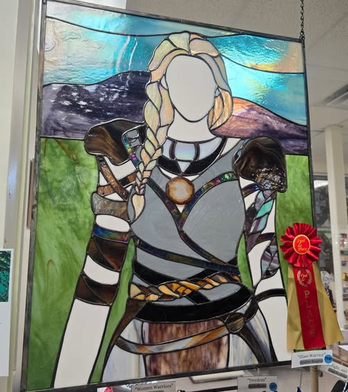 2nd place! Not too shabby. Thank you @stainedglassexpress, @youghioghenyglass and @wissmach_glass. This entire panel minus the agate slice in the middle was made with glass from the 2025 glass sale♡